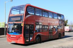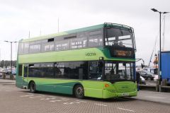 The Cheltenham National Hunt Festival brings buses from all over the country to the town for the duration.They are used on shuttles to and from the town centre and the railway station.Seen arriving Cheltenham Spa Station on Ladies Day ,15th March 2017 is 2007 ADL Trident 2/ADL Enviro highbridge No.19302 (AE07KZC).It is seen in Cambridge Park and Ride livery which it had recently been displaced from and will be converted to single door for use elsewhere.
