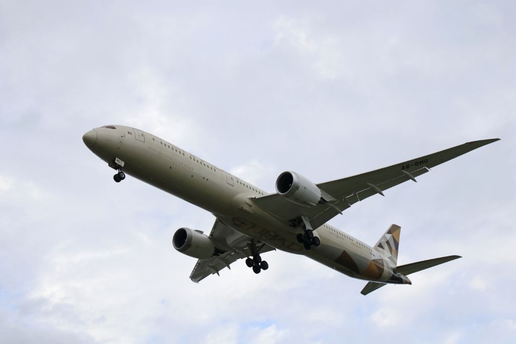 Etihad Airways Boeing 787-10 Dreamliner A6-BMG delivered in July 2018 on finals for Runway 27L at Heathrow on 19th August 2021 arriving from Abu Dhabi.