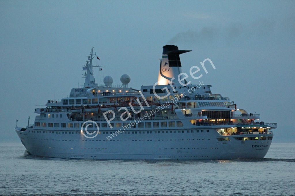 An evening departure for M.V.Discovery from Avonmouth on 18th May 2014.It is seen passing Battery Po...