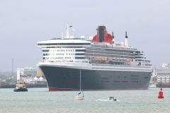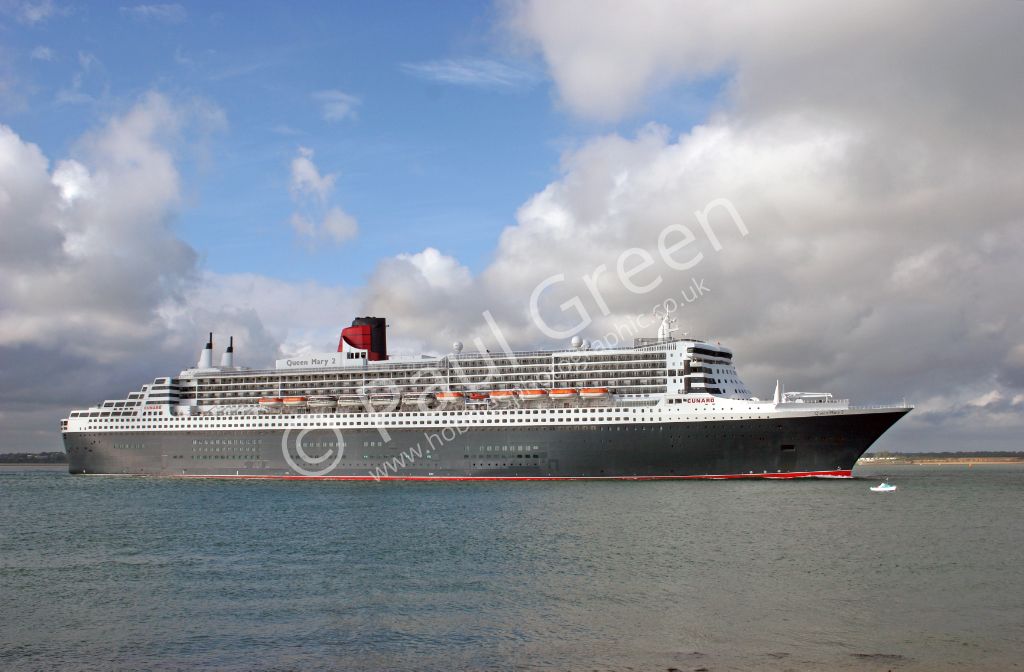 Queen Mary 2 approaching Calshot Spit outbound from Southampton on 16th July 2007.