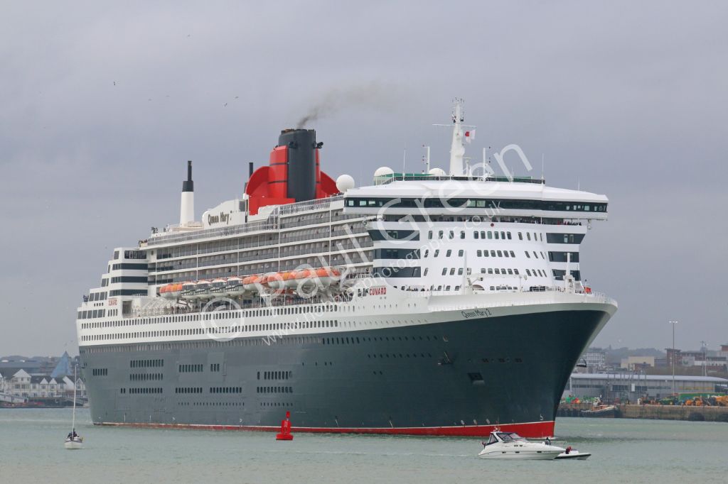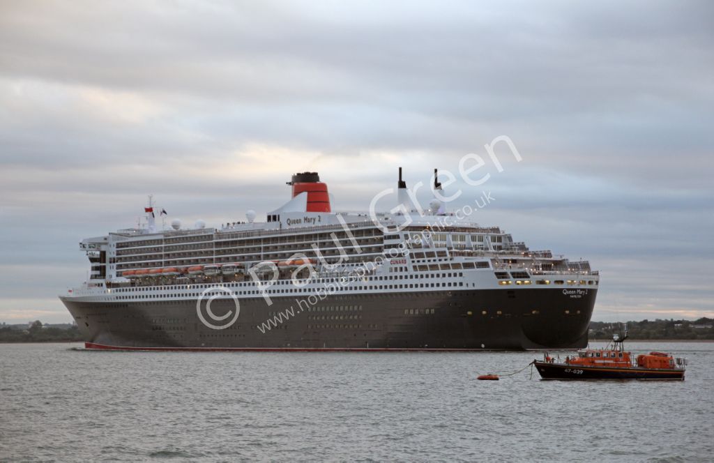 Queen Mary 2 is inbound passing Calshot Spit early in the morning of 13th July 2012.