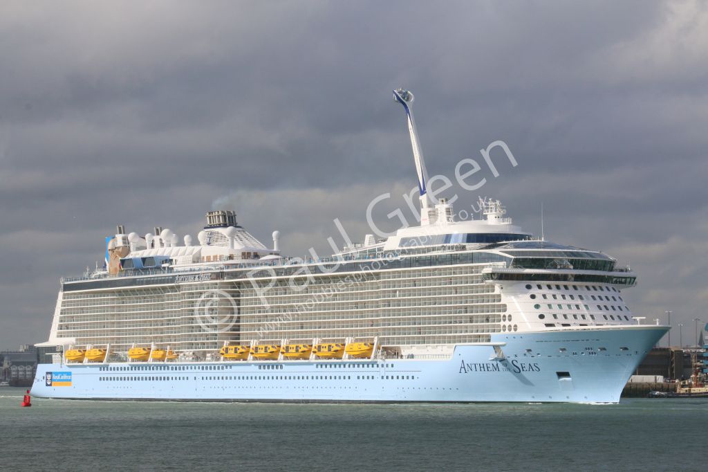 Royal Caribbeans new cruise ship Anthem of the Seas departing from Berth 101,Southampton on 3rd May ...