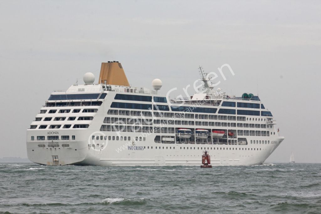 P&Os Adonia outbound from Southampton passing the Blach Jack Buoy off Calshot Spit on 5th May 2014.