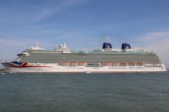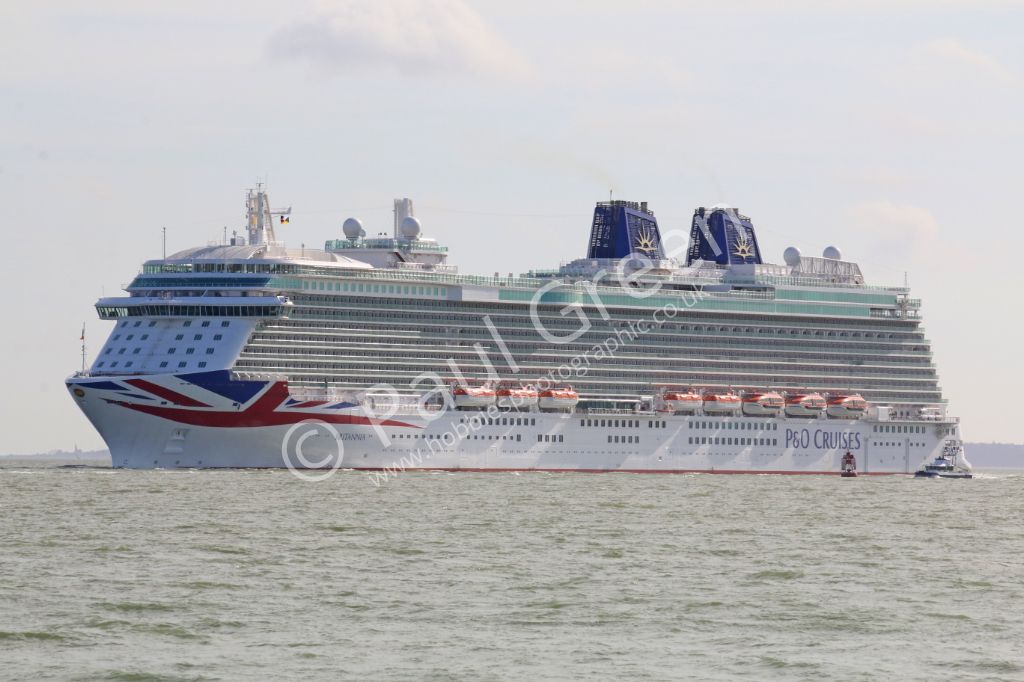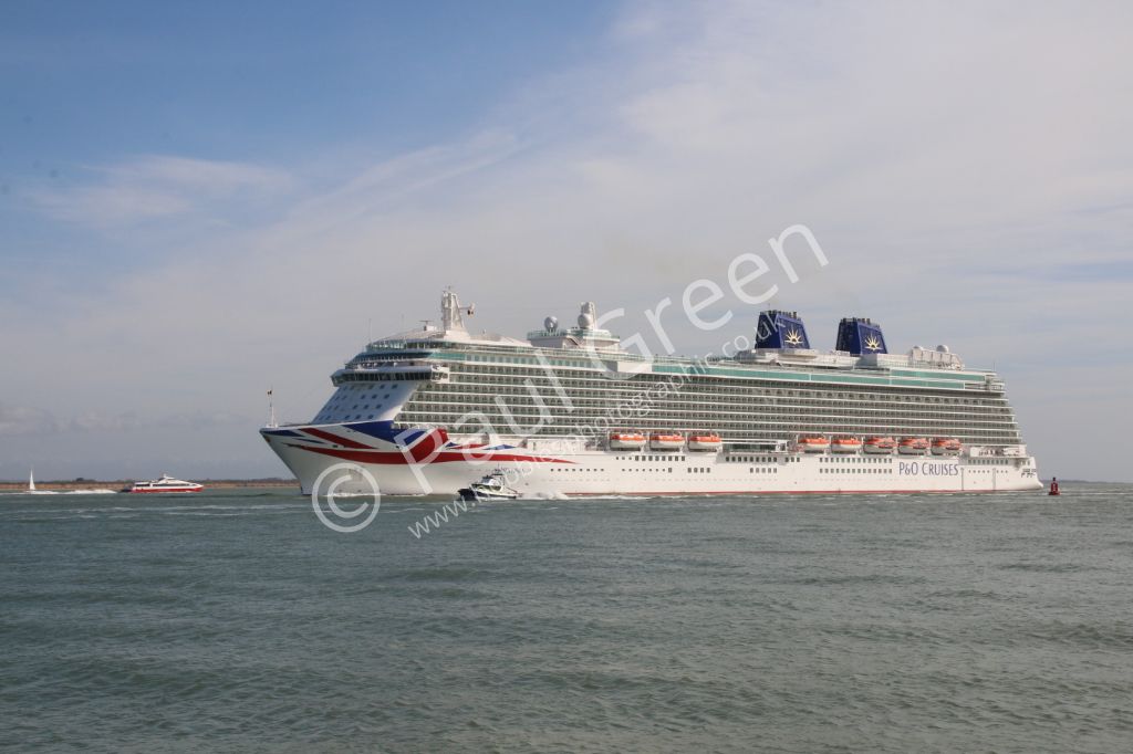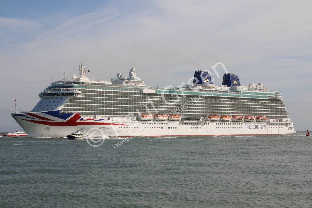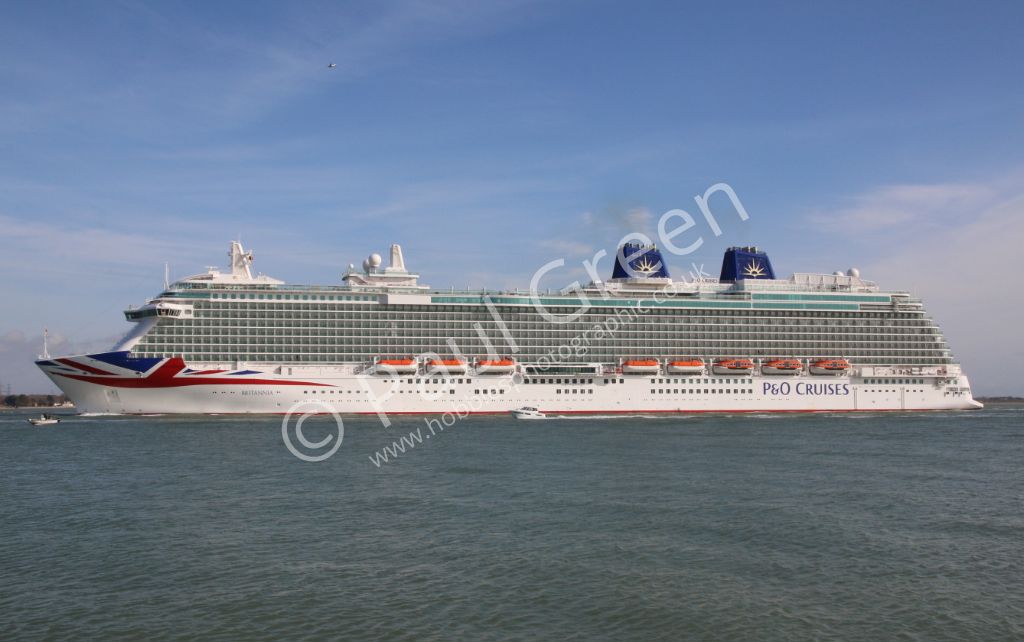 The new P&O cruise ship Britannia seen passing Calshot Spit on 6th March 2015 inbound for Southampto...
