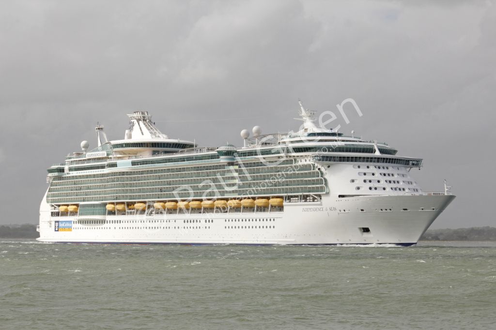 Royal Caribbeans Independence of the Seas approaching Calshot Spit outbound from Southampton on 15th...