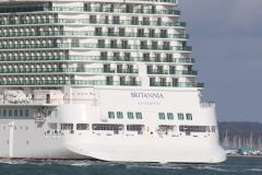 A close up of the stern of the new P&O cruise ship Britannia seen passing Calshot Spit on 6th March ...
