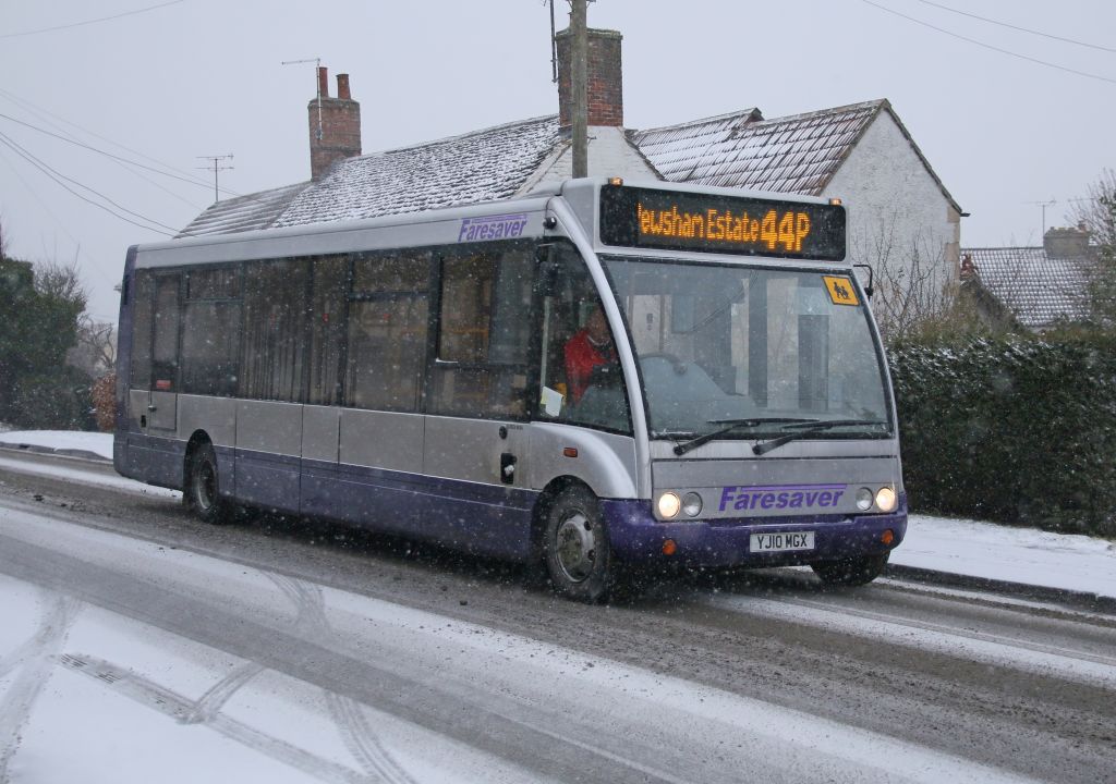 2010 M950 Optare Solo/Optare YJ10MGX seen in a snowy London Road,Chippenaham on 1st March 2018 worki...