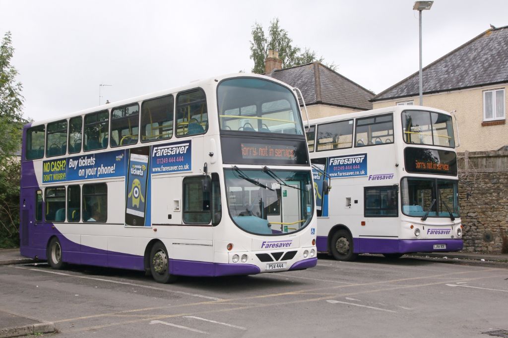 PSV444 and LJ54BDE in Chippenham Bus Station on 22nd August 2017.