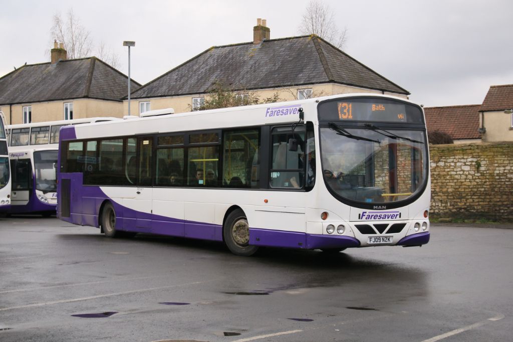 2009 MAN/Wright Meridian FJ09NZK seen leaving Chippenham Bus Station on 9th February on service X31 ...