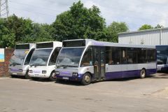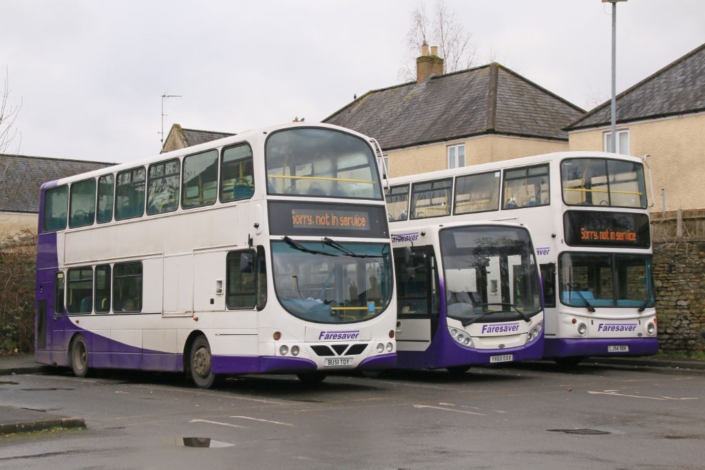 Faresavers depot in Chippenham on 25th June 2016 with some of the fleets Optare Solos prominant.