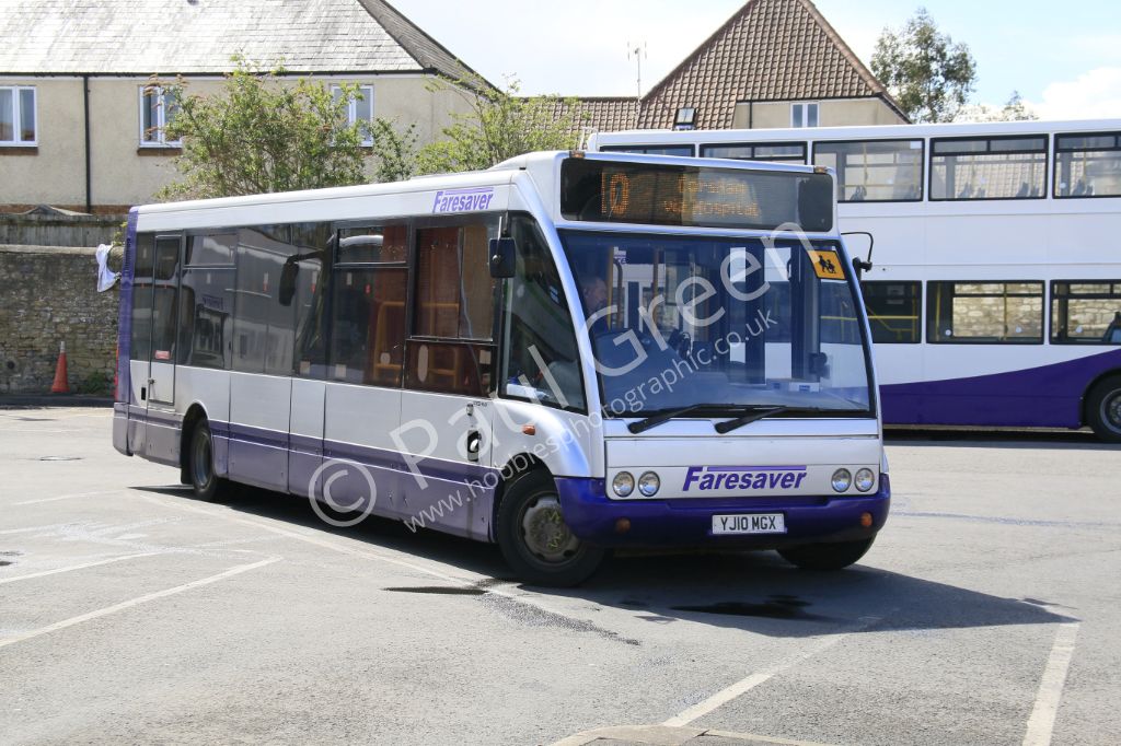 2010 Optare Solo M950/Optare YJ10MGX leaving Chippenham Bus Station on 26th April 2016 with a servic...