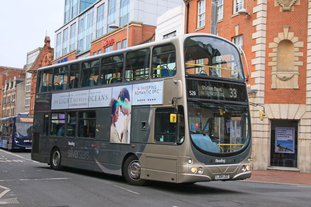 Reading Buses 2004 VDL DB250/Wrightbus Gemini No.528 (LJ04LDZ) with Silver stars branding seen in Re...