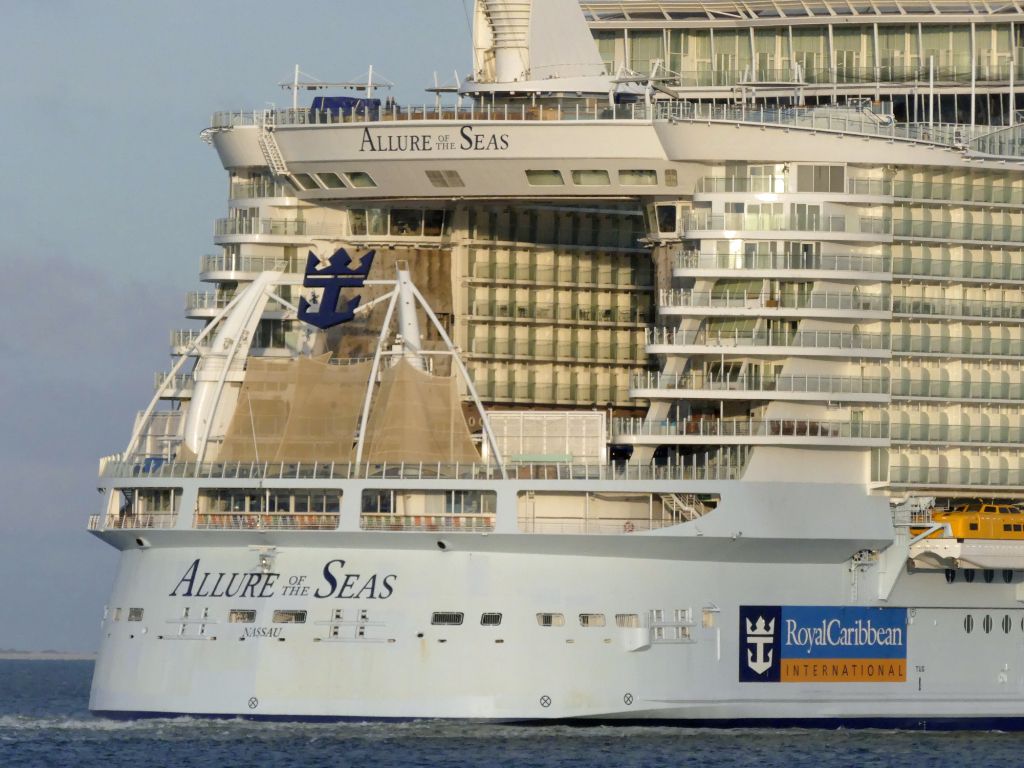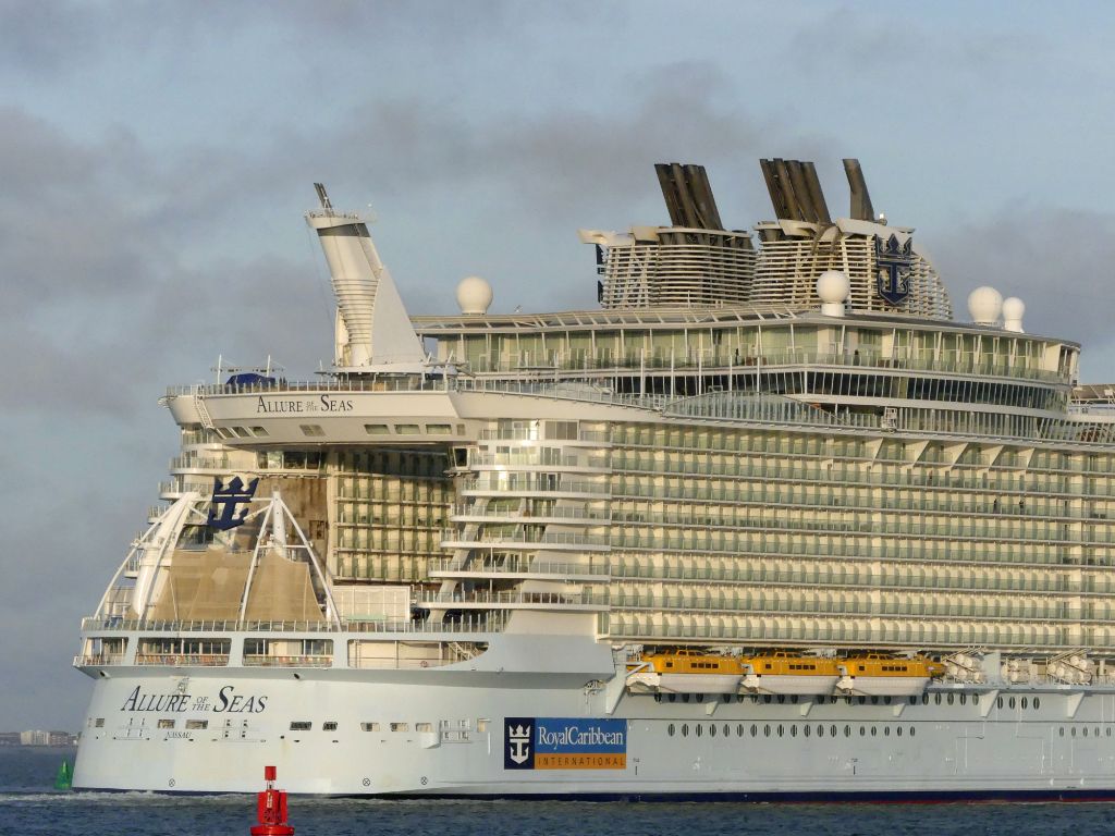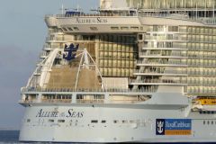 The stern of Allure of the Seas outbound from Southampton passing Calshot Spit on 24th July 2020.