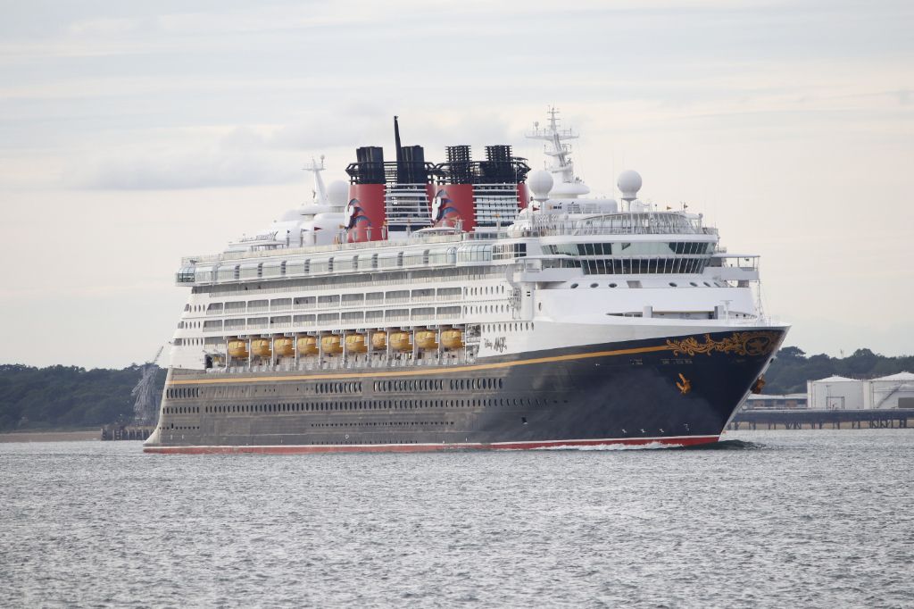 Disney Magic outbound from Southampton on a coastal voyage passing Calshot Spit on 9th July 2021.