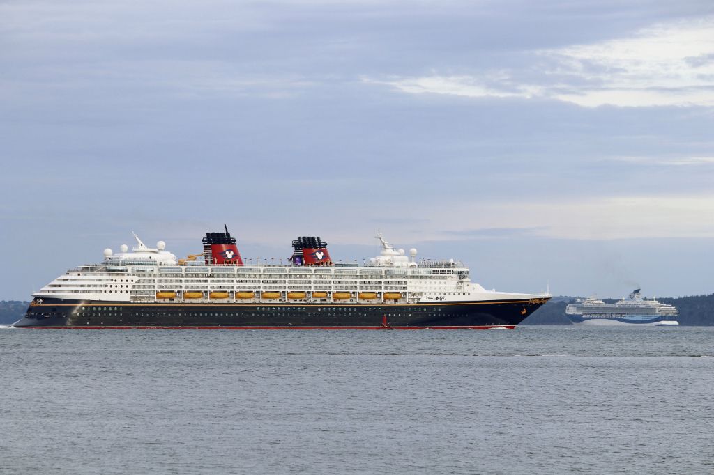 Disney Magic outbound from Southampton on a coastal voyage approaching Calshot Spit on 9th July 2021.