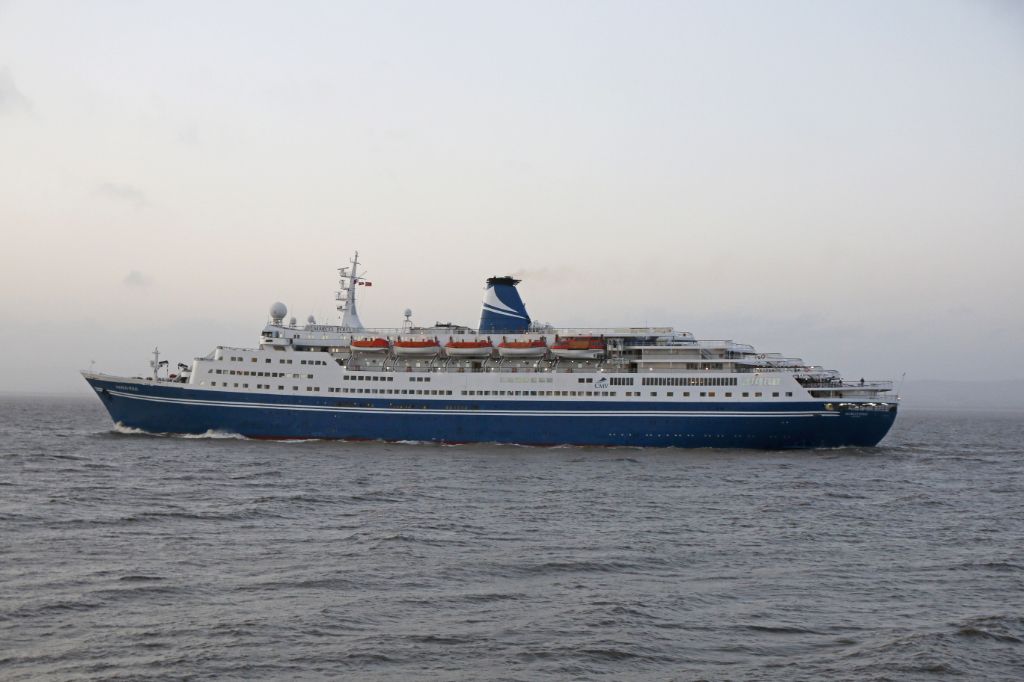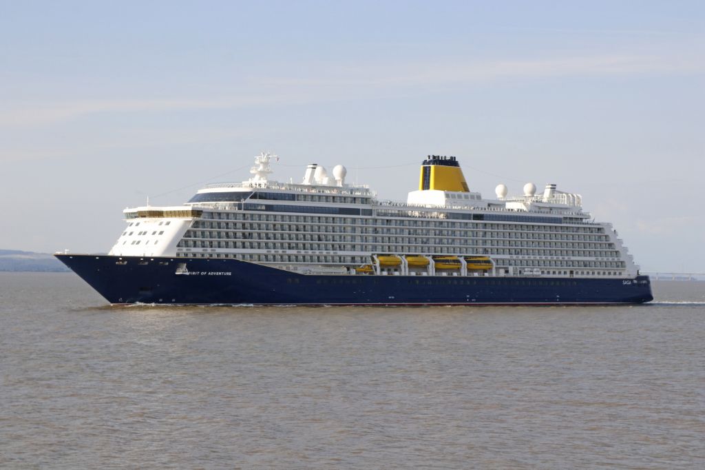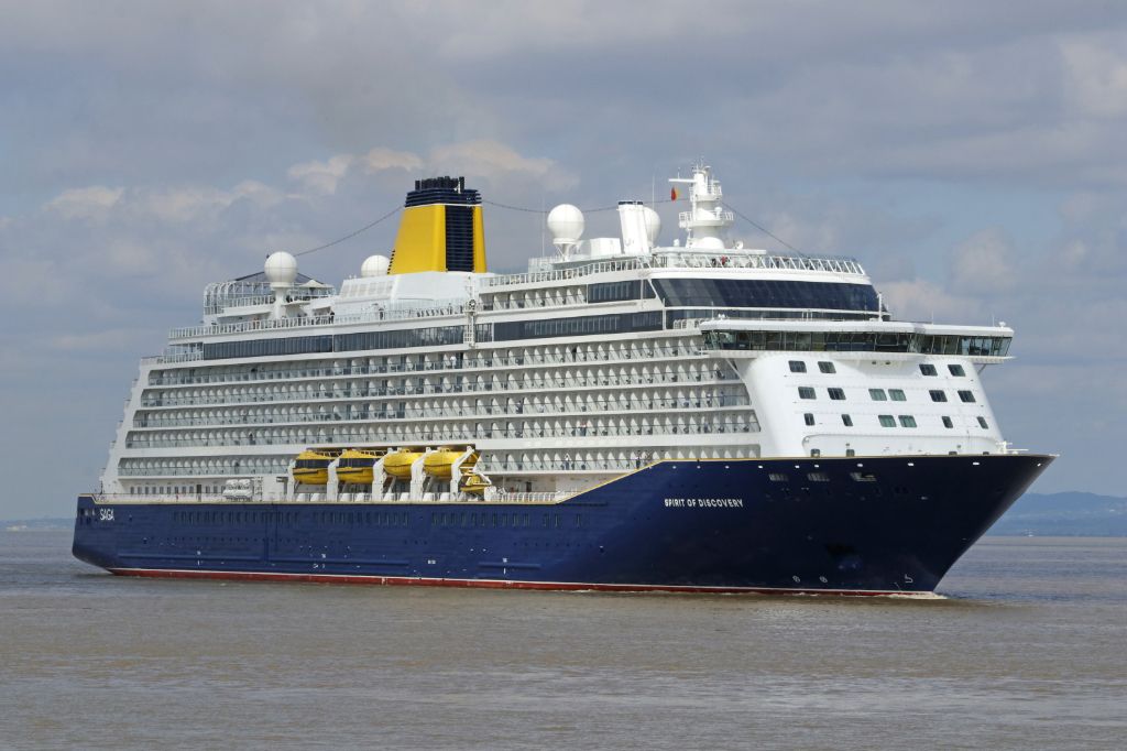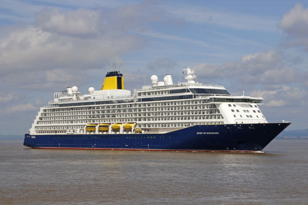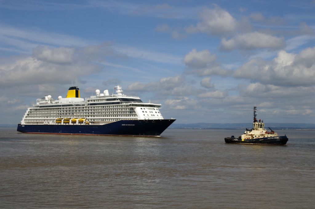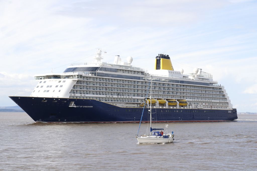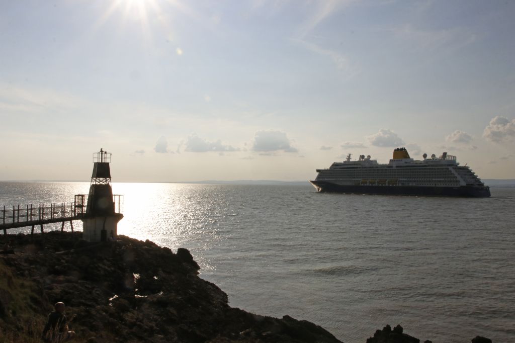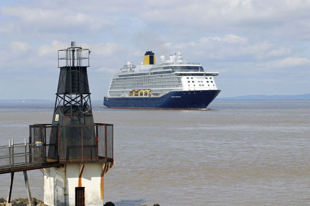 SAGA's Spirit of Discovery past Battery Point, Portishead outbound from Royal Portbury Docks (Avonmo...