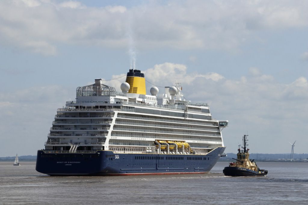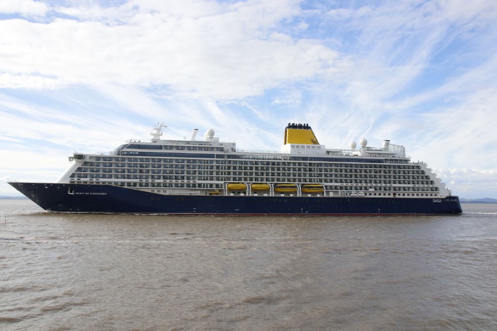 SAGA's Spirit of Discovery approaching Battery Point, Portishead outbound from Royal Portbury Docks ...