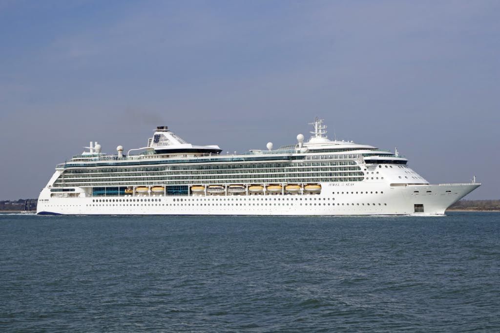 Royal Caribbean's Jewel of the Seas passing into the Solent outbound from Southampton to Poole Bay o...