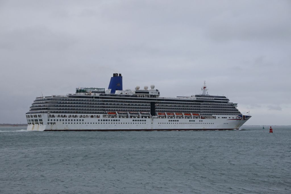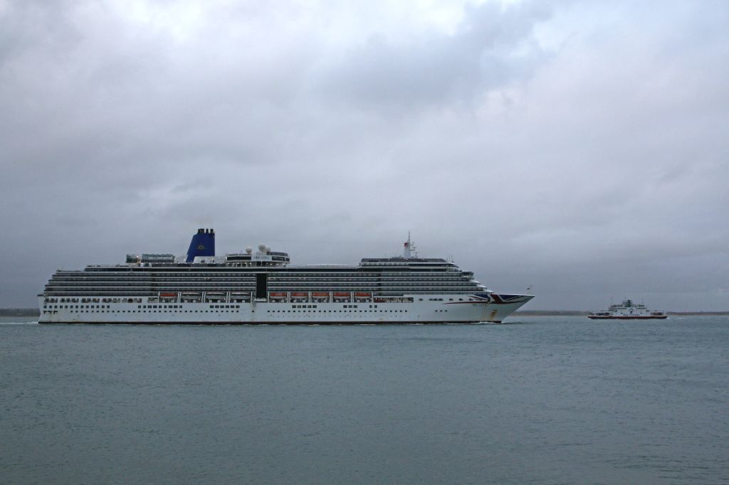 A rather 'scruffy' Arcadia outbound from Southampton passing Calshot Spit in the gloom of 10th Octob...