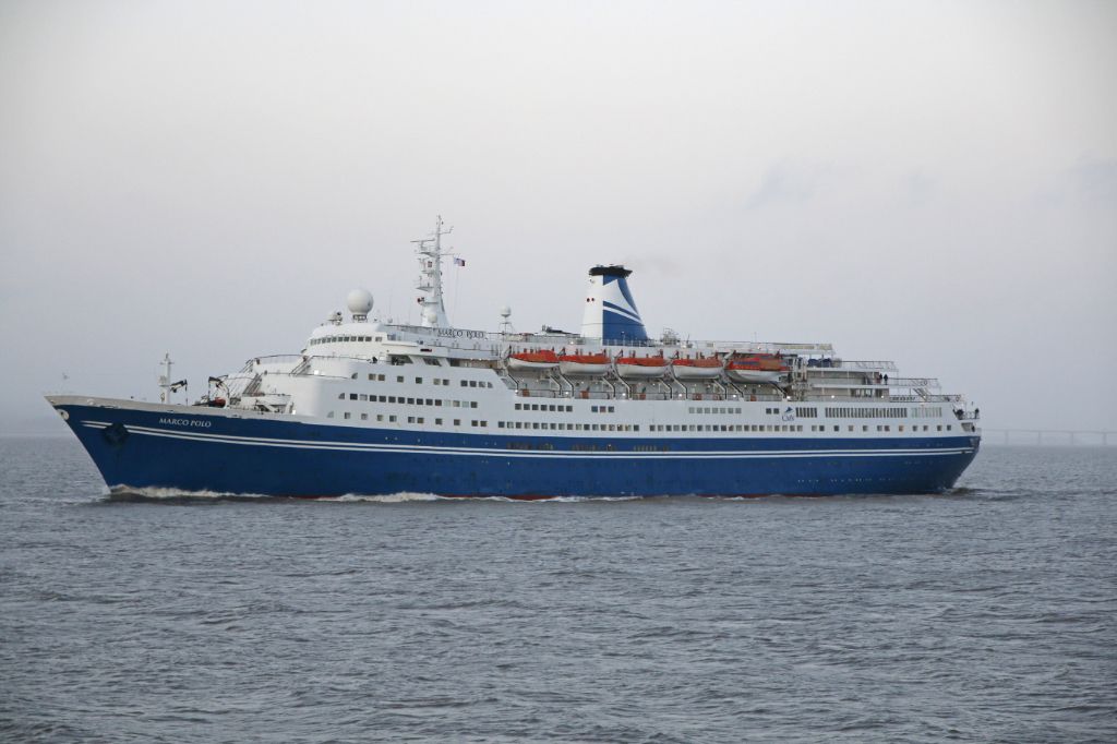 CMVs Marco Polo outbound from Avonmouth on 6th January 2020 at the beginning of a 78-night "Grand Af...