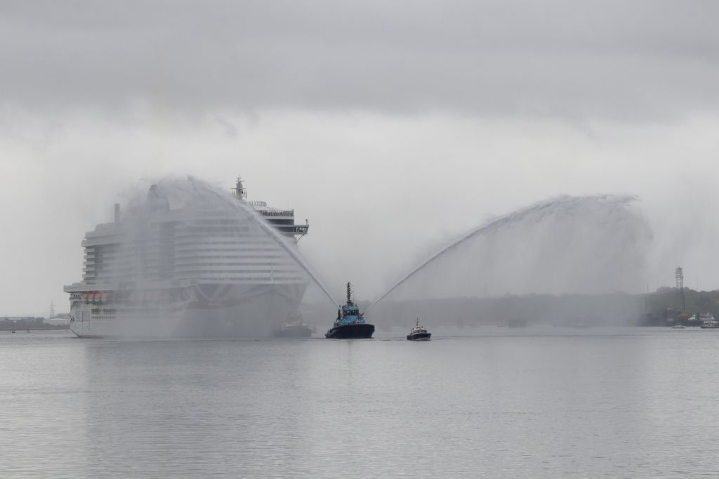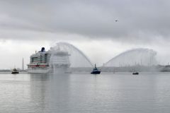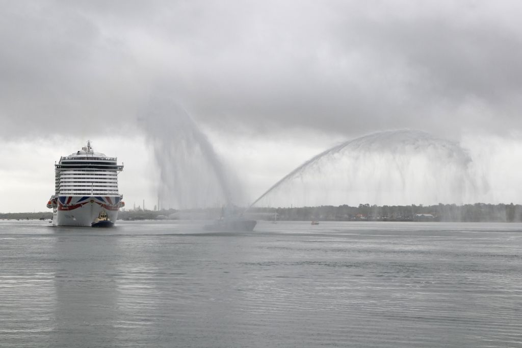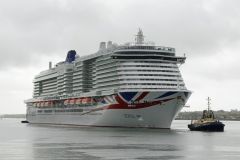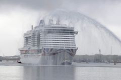P&Os new cruise ship IONA on her maiden arrival at Southampton on a vey wet early 16th May morning.