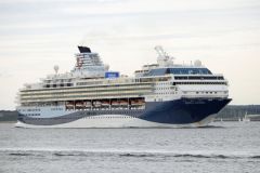 Marella Explorer 2 passing Calshot Spit and the Black Jack Buoy outbound from Southampton to Vlissin...
