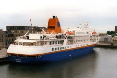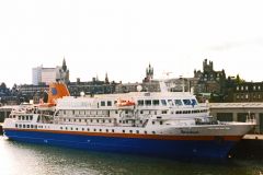 Hapag Lloyds Bremen seen in Aberdeen. since 1993. She was built as Frontier Spirit at the Mitsubishi...