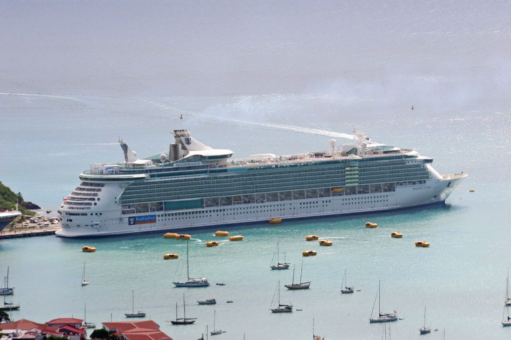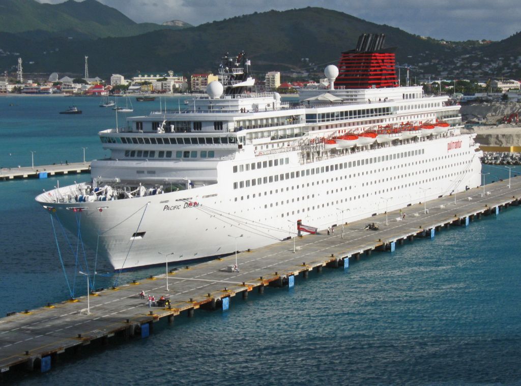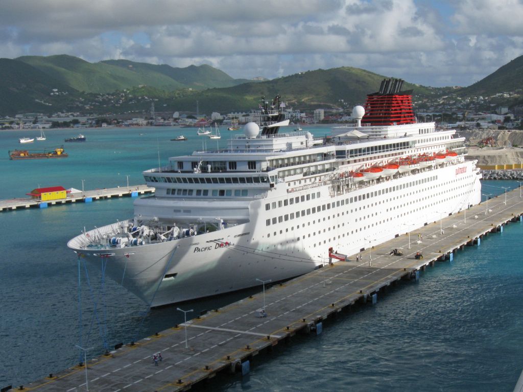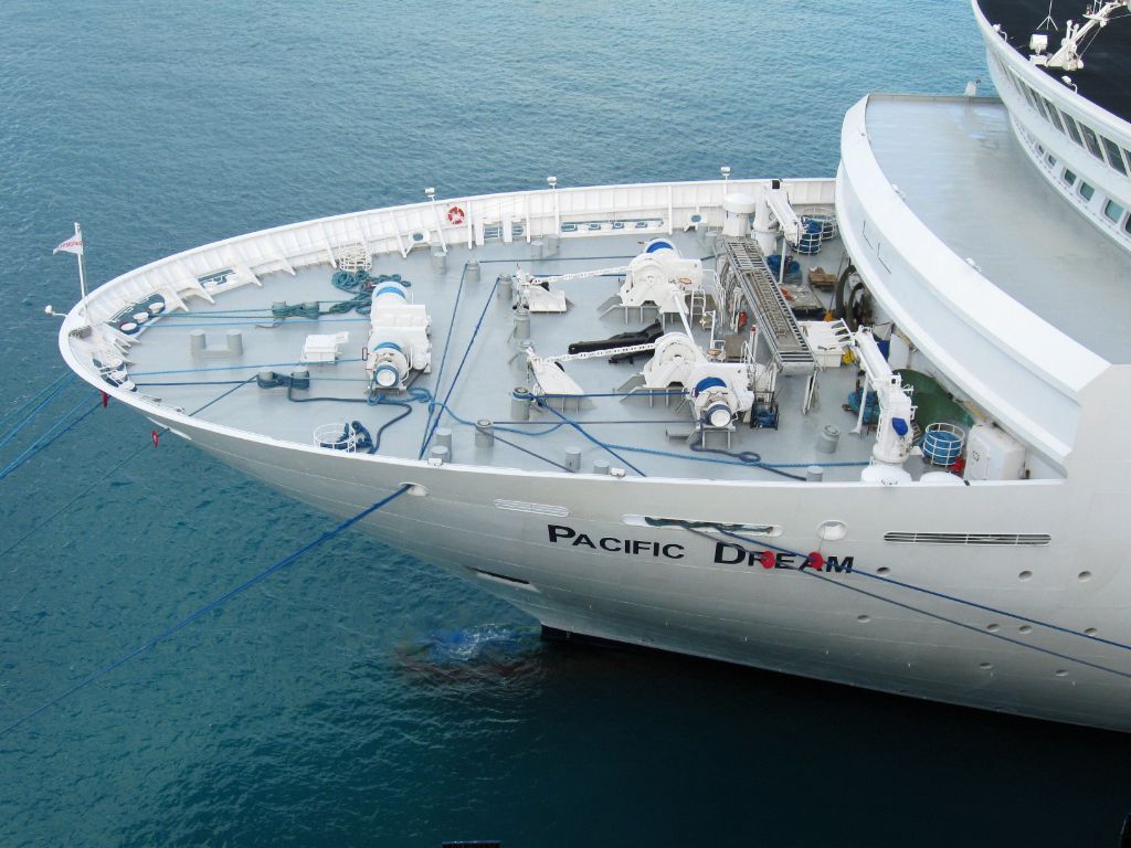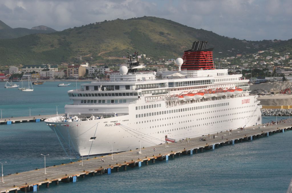 An arial view of the bow of Pullmanturs Pacific Dream at Phillipsburg,St.Martin on 10th December 200...
