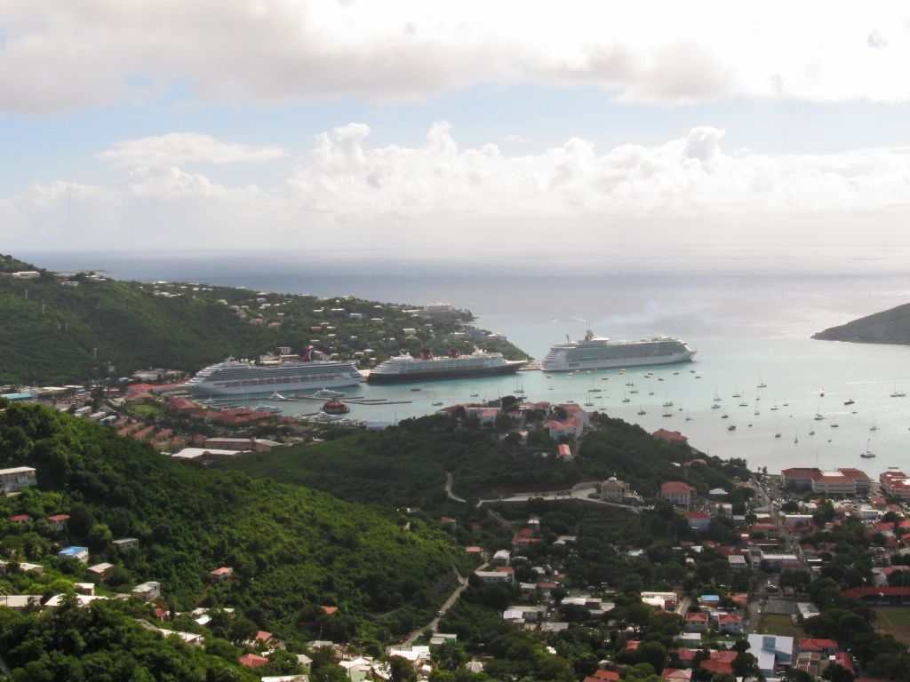 Carnival Glory,Disney Magic and Freedom of the Seas berthed at St.Thomas on 9th December 2009.