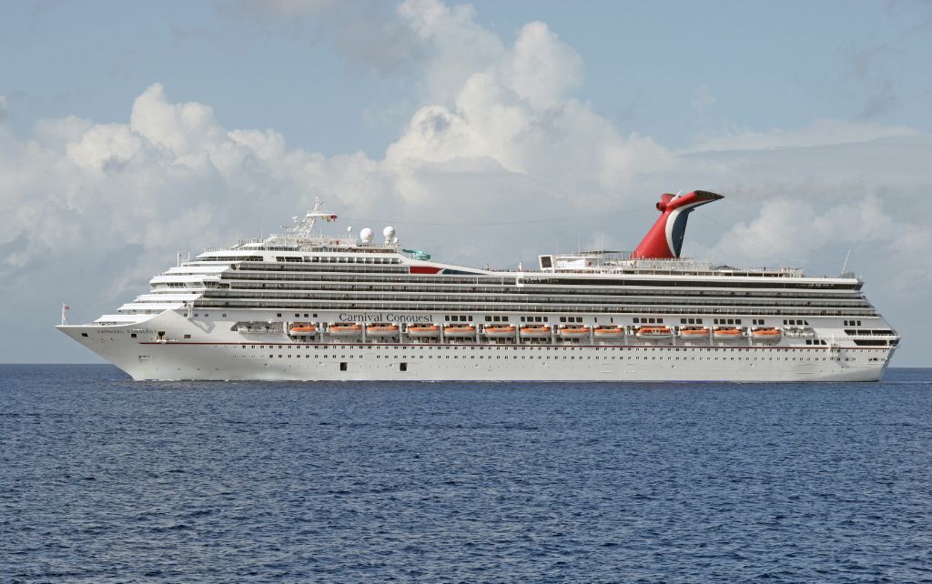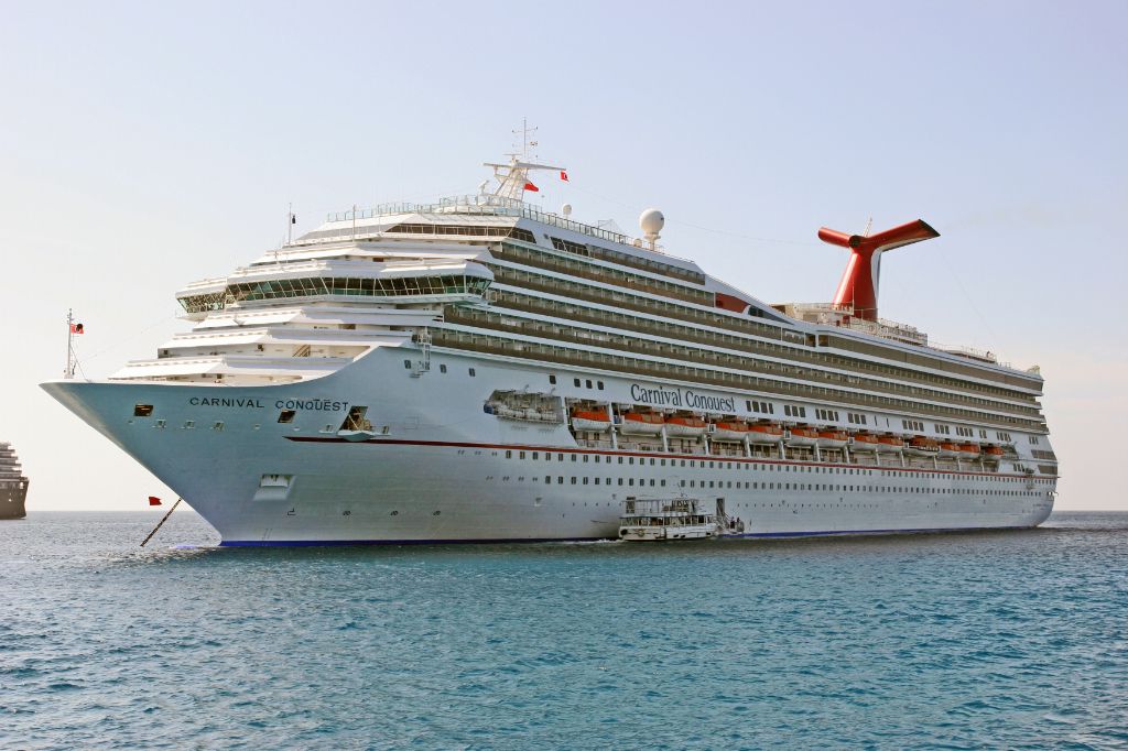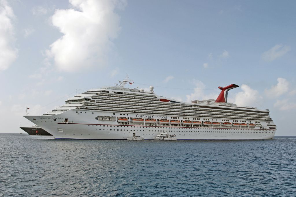 Carnival Cruise Lines cruise ship Carnival Conquest anchored off Grand Cayman on 3rd December 2009.