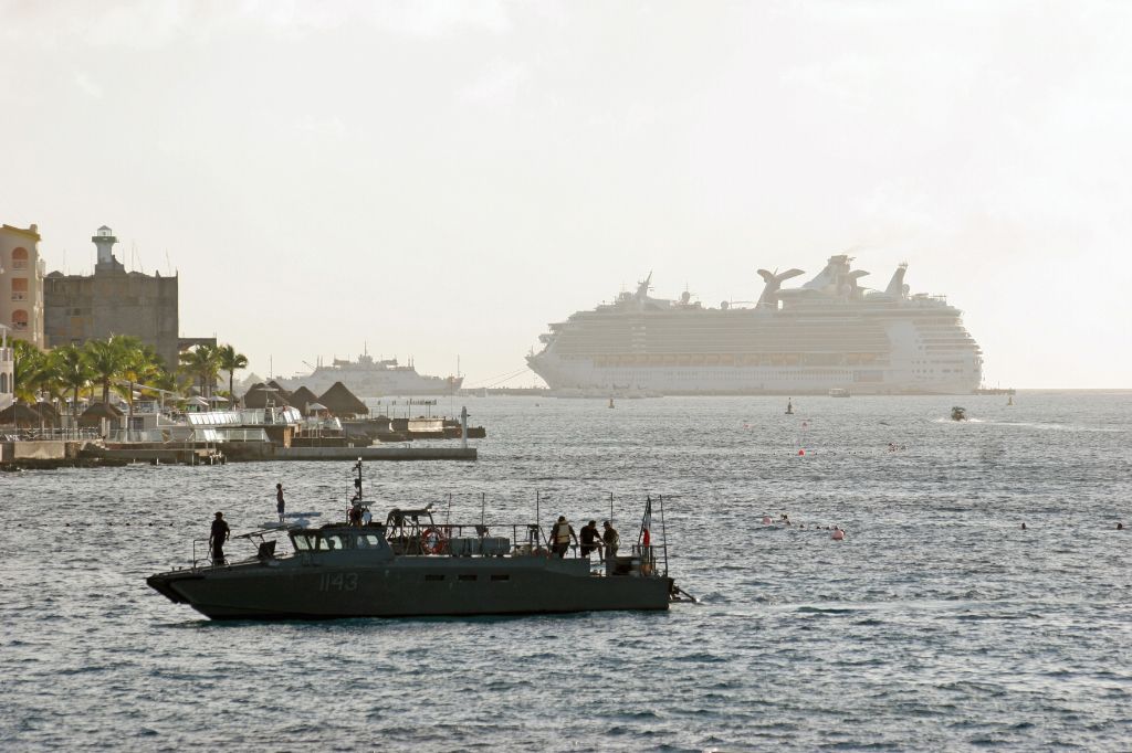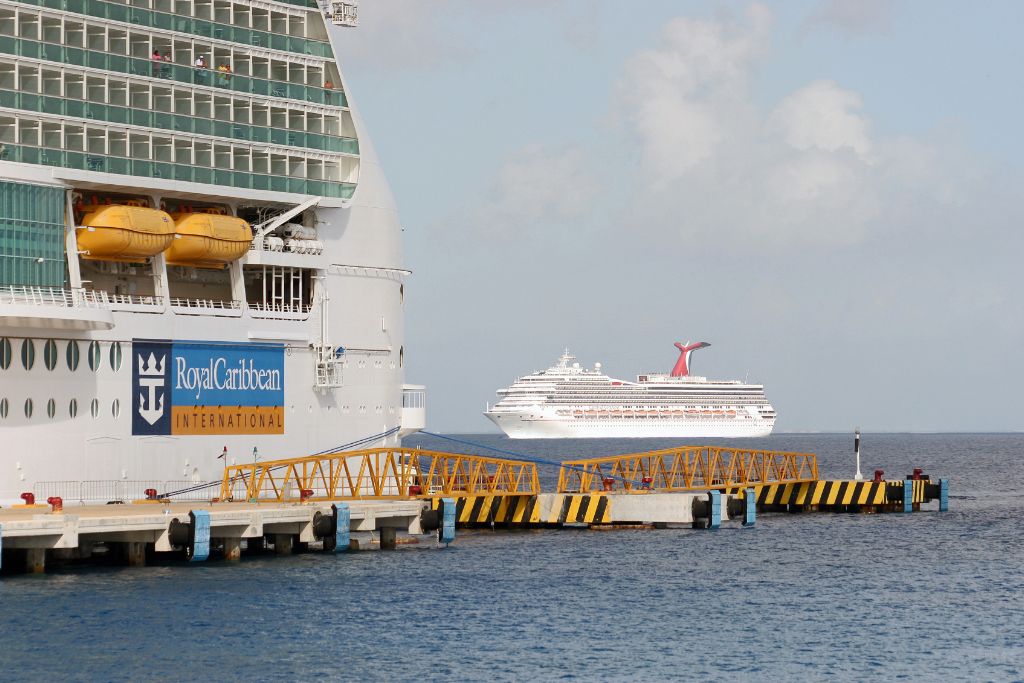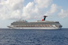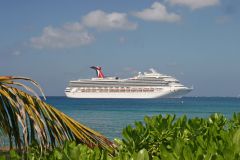 Carnival Conquest seen astern of Freedom of the Seas arriving at Cozomel,Mexico on 4th December 2009.