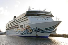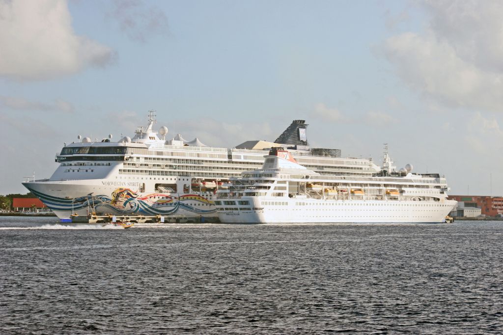 NCLs Norwegian Spirit and Fred Olsens Braemar seen at Cozomel,Mexico on 4th December 2009.