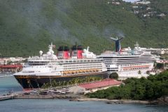 Disney Magic and Carnival Glory berthed at St.Thomas on 9th December 2009.