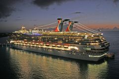 The stern of Carnival Glory at night at St.Thomas on 9th December 2009.
