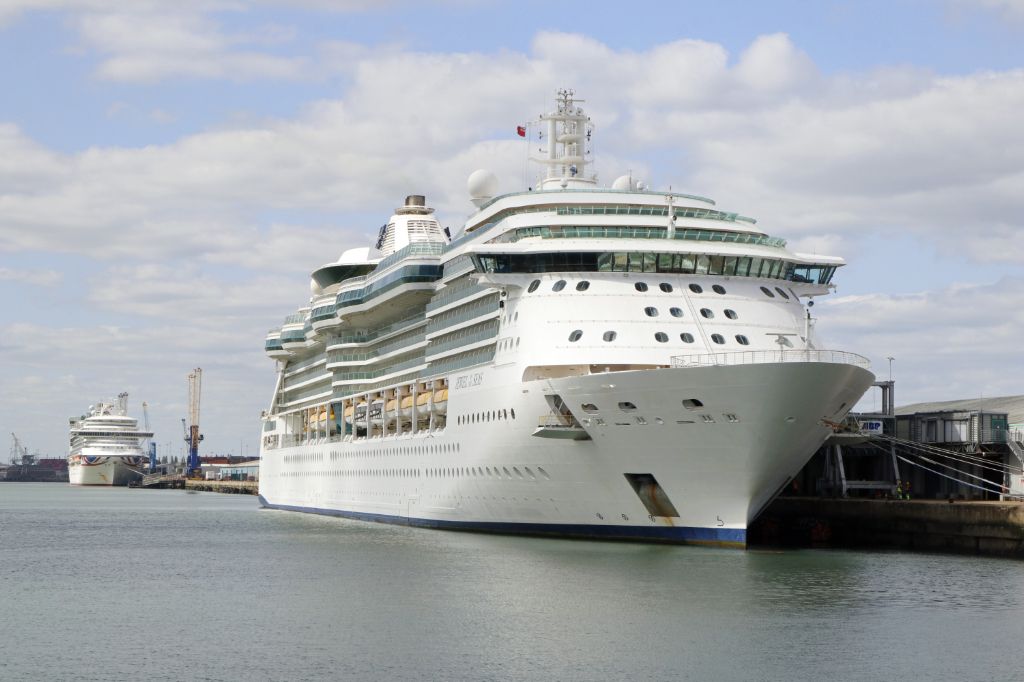 Jewel of the Seas on Berth 101 with Ventura on Berth 106 , Southampton 20th April 2024.