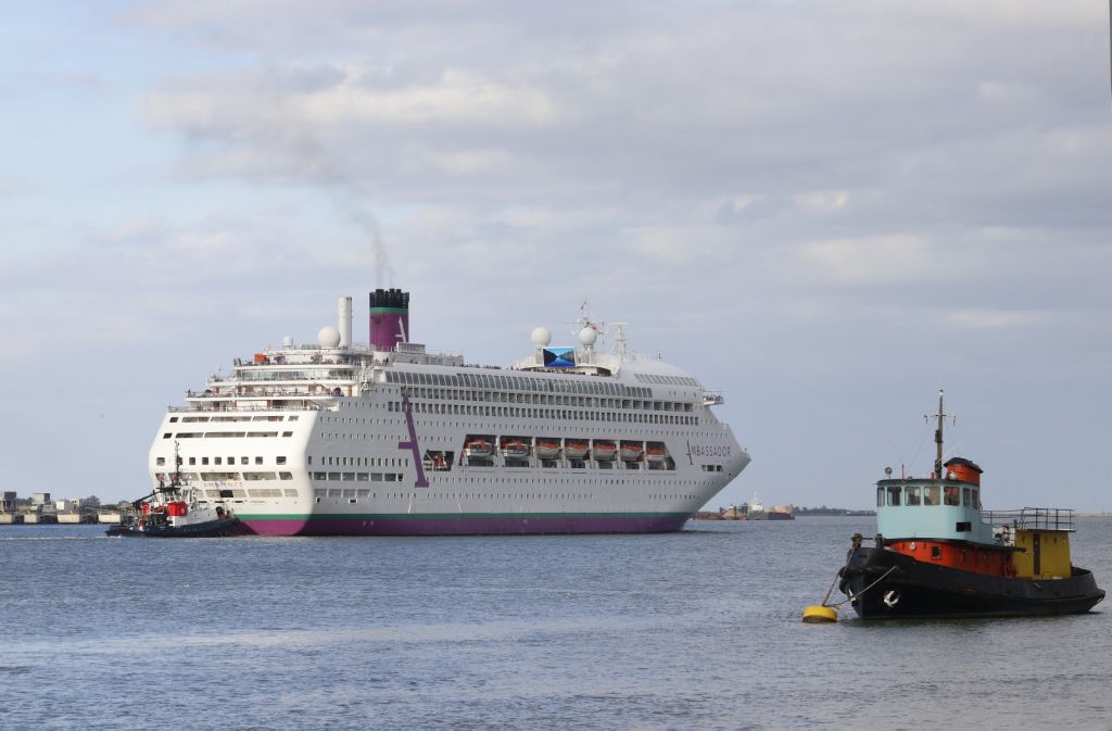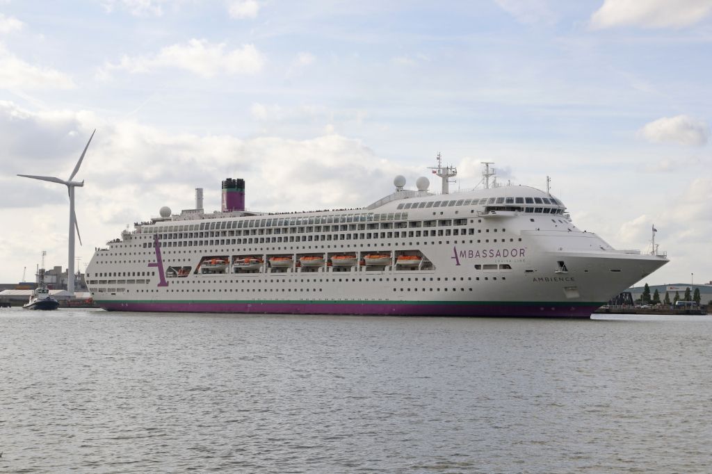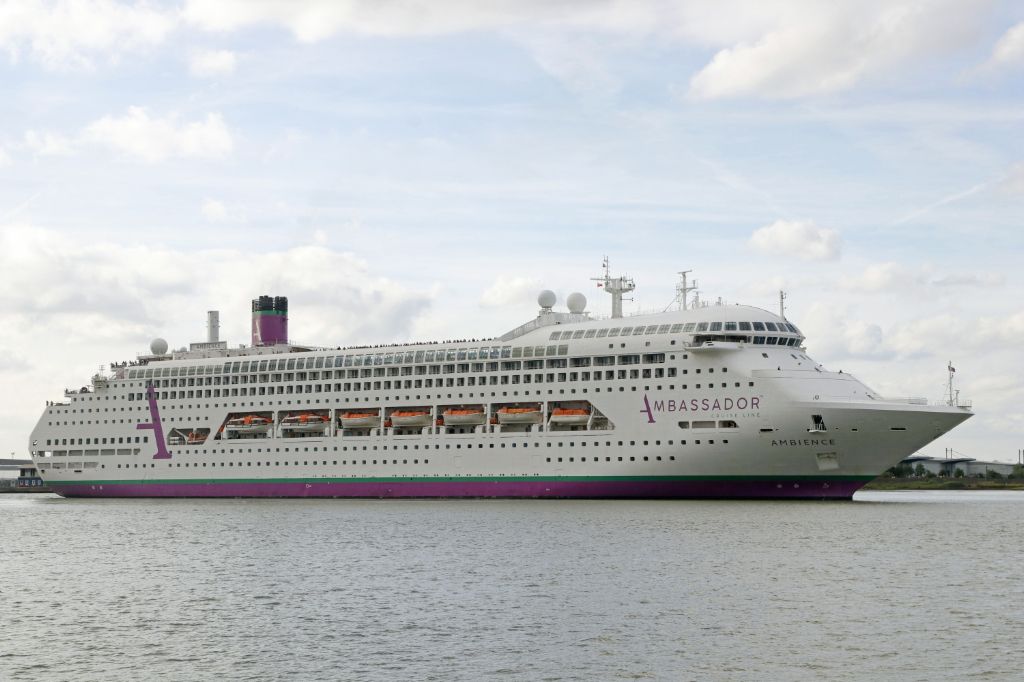 Ambassador Cruises Ambience seen on berth at Tilbury on 10th August 2024.