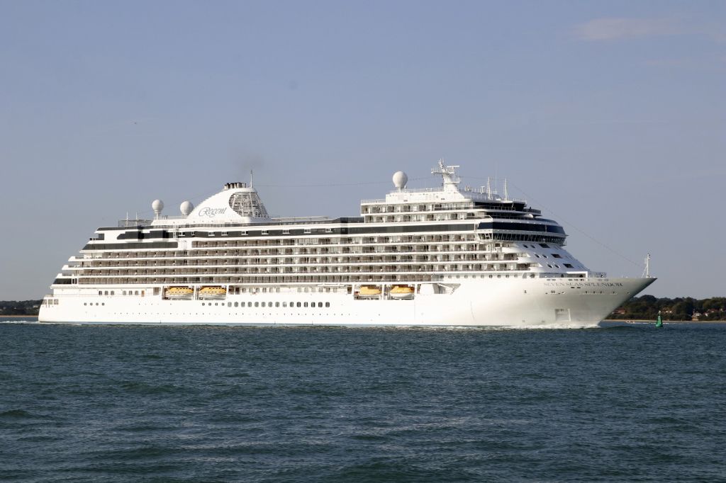 Seven Seas Splendour seen off Calshot Spit outbound from Southampton on 12th August 2024.
