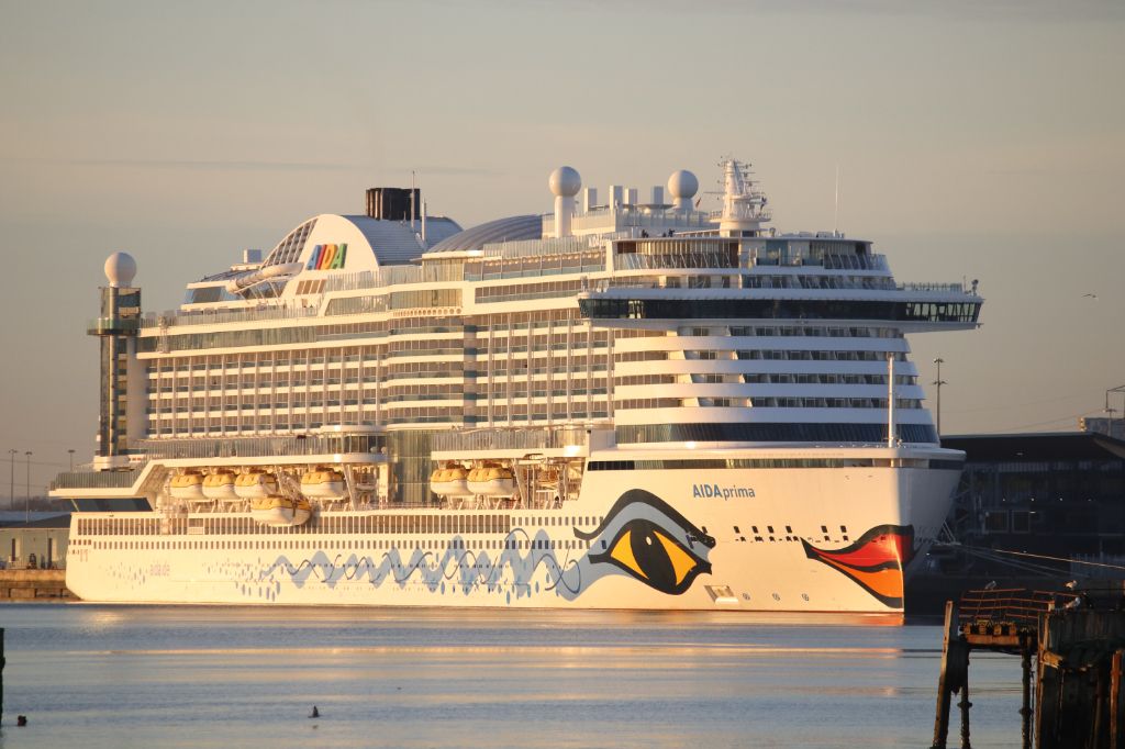 AIDAprima seen on Berth 102, Southampton on 23rd January 2023.