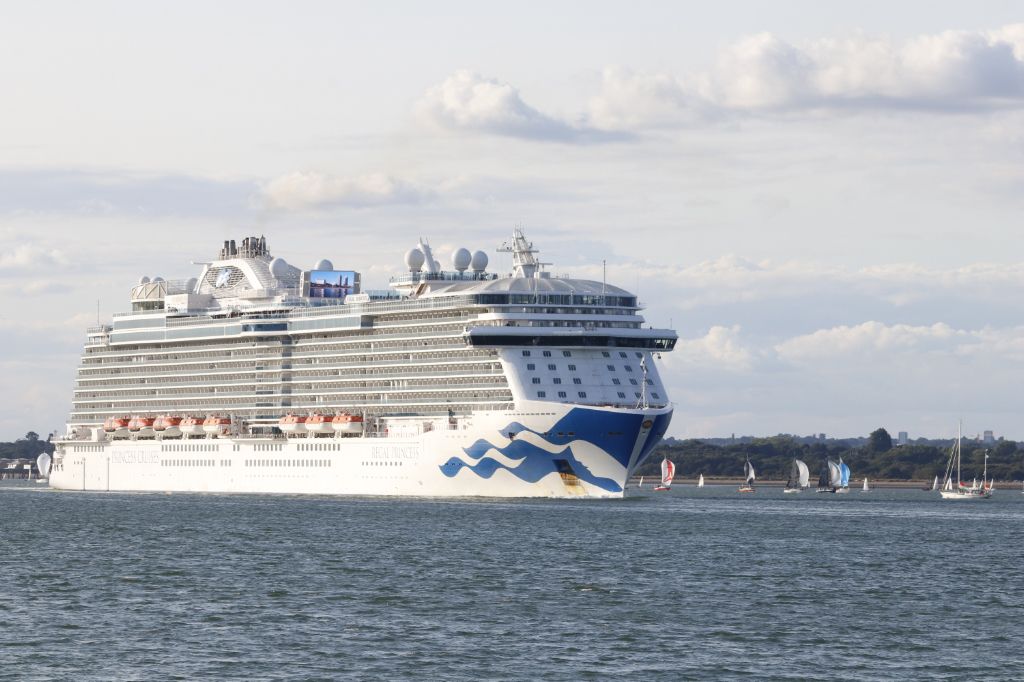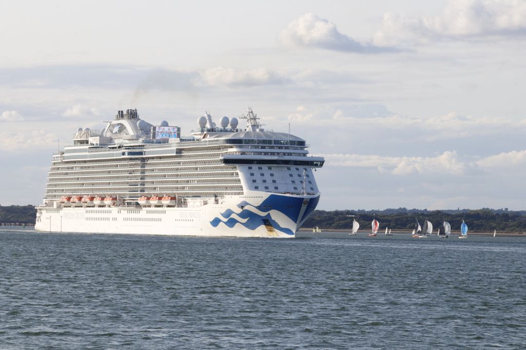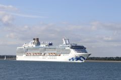 Regal Princess passing Calshot Spit outbound from Southampton on a 'Round UK' cruise., 19th July 202...