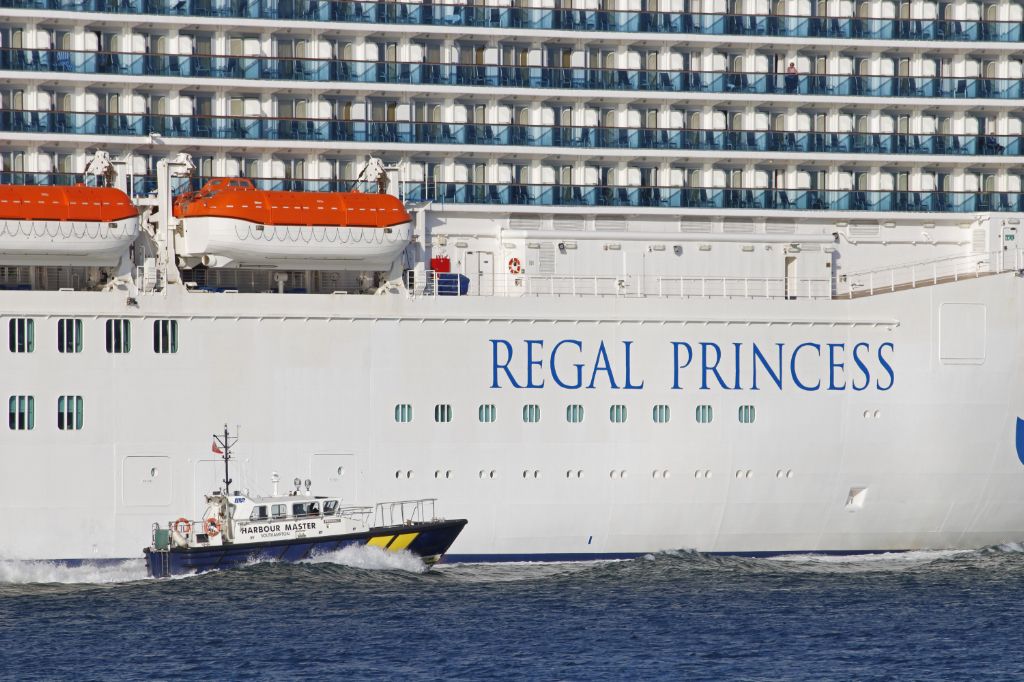 Harbour Masters launch 'Prospect' passing Regal Princess outbound from Southampton on 19th July 2023.