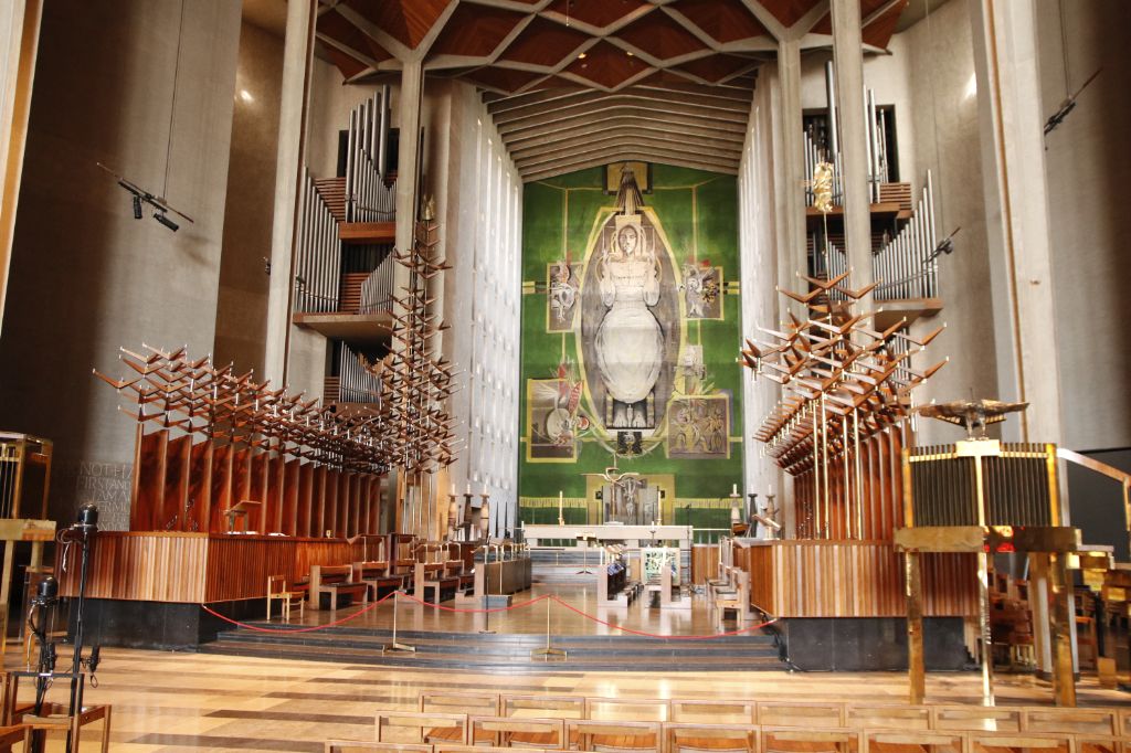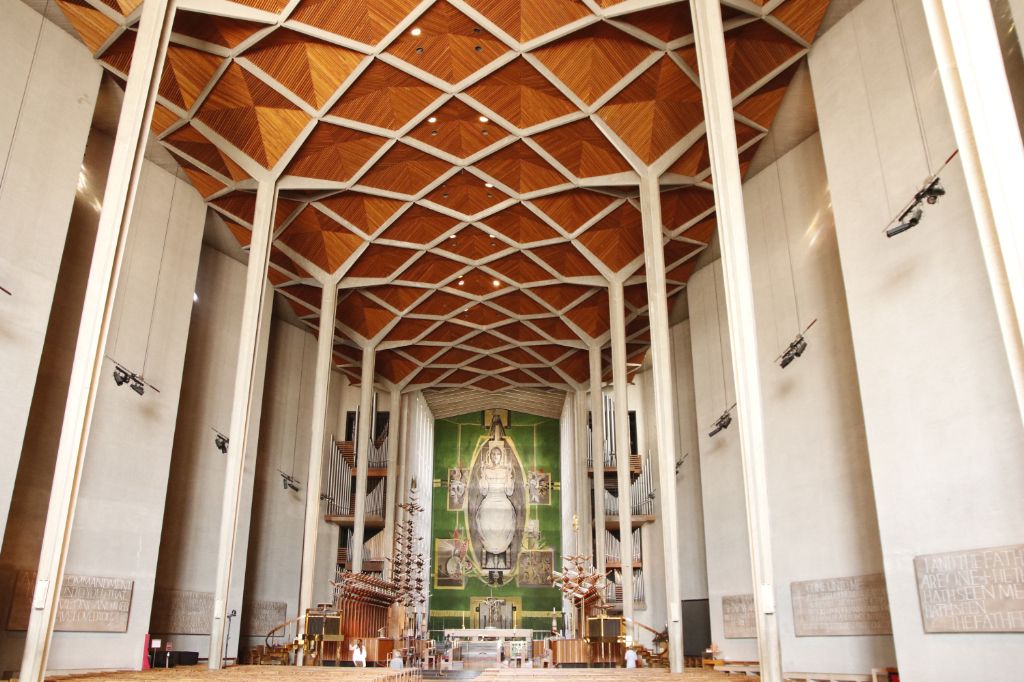 he current St Michael's Cathedral, built next to the remains of the old, was designed by Basil Spenc...