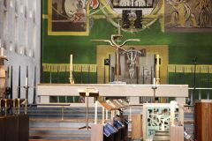 The Baptistry window designed by John Piper (made by Patrick Reyntiens), of abstract design that occ...