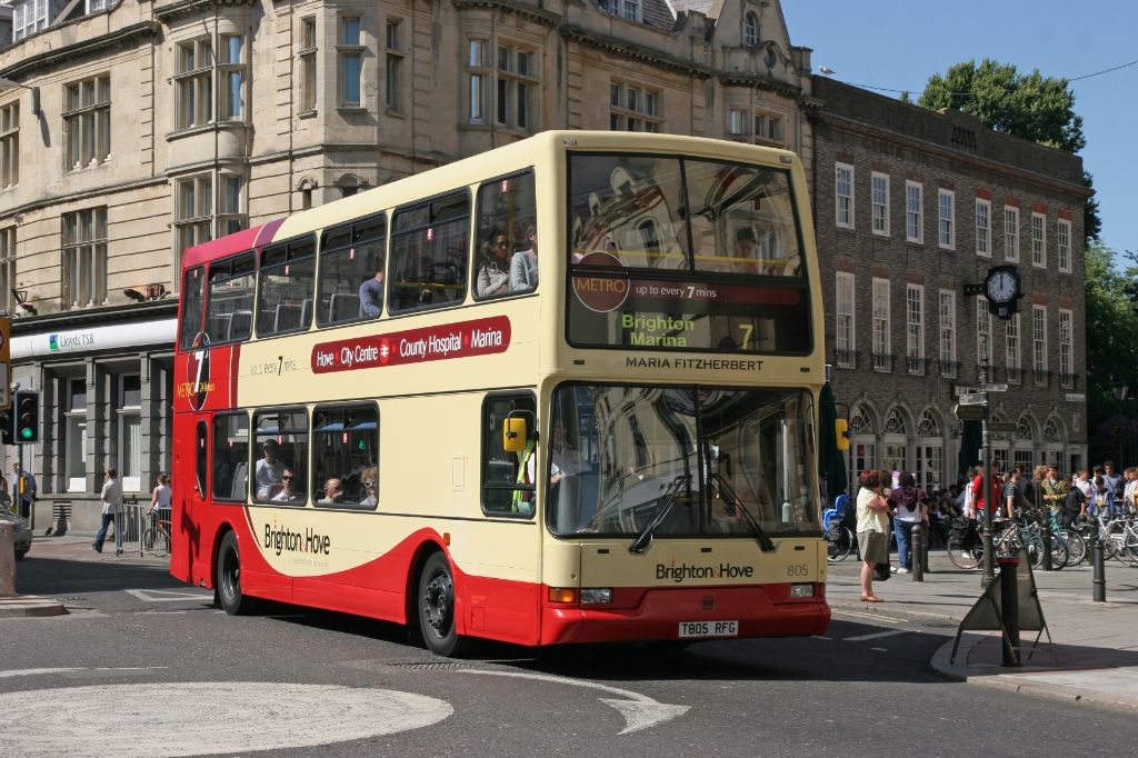 Go-Ahead Brighton and Hove 1999 Dennis Trident No.805 (T805RFG) 'Maria Fitzherbert' seen in Castle S...