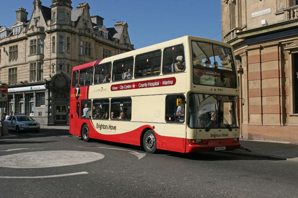 Go-Ahead Brighton and Hove 1999 Dennis Trident/East Lancs Lolyne No.829 (W829NNJ) 'C B Fry' seen in ...