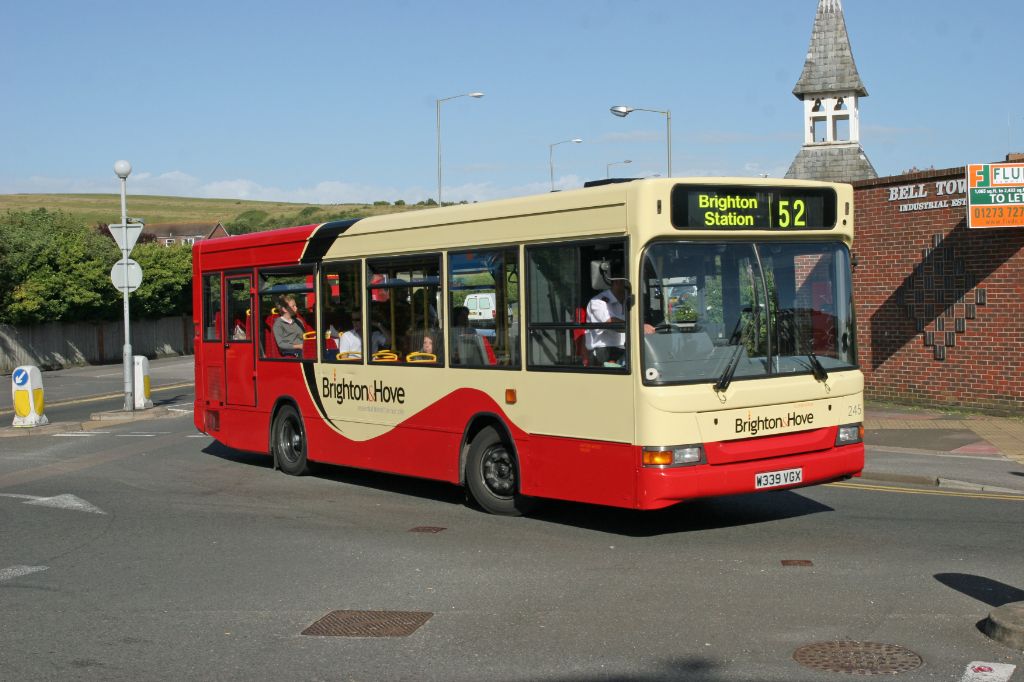 Go-Ahead Brighton and Hove 1996 Dennis Dart SLF/Plaxton Pointer No.245 (W339VGX) seen near Whitehawk...