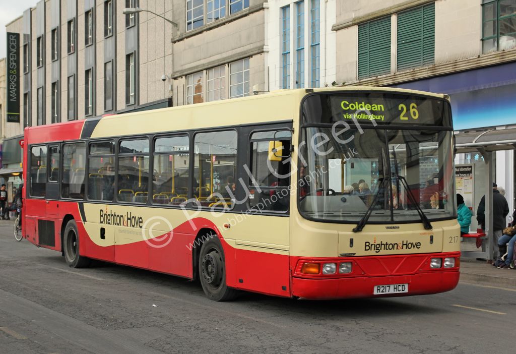 Go-Ahead Brighton and Hove 1997 Volvo B10BLE/Wright Renown No.217 (R217HCD) seen in Western Road,Bri...