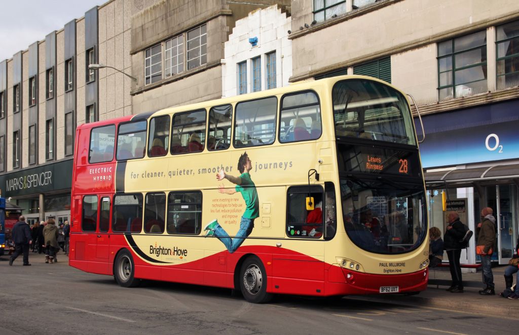 Go-Ahead Brighton and Hove 2012 Volvo B5LH/Wrightbus Gemini 2 No.452 (BF62UXT) 'Paul Millimore' seen...
