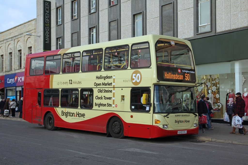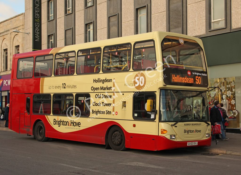 Go-Ahead Brighton and Hove 2003 Scania N94 UD/East Lancs Cityzen No.606 (GX03SUF) 'Tommy Farr' seen ...