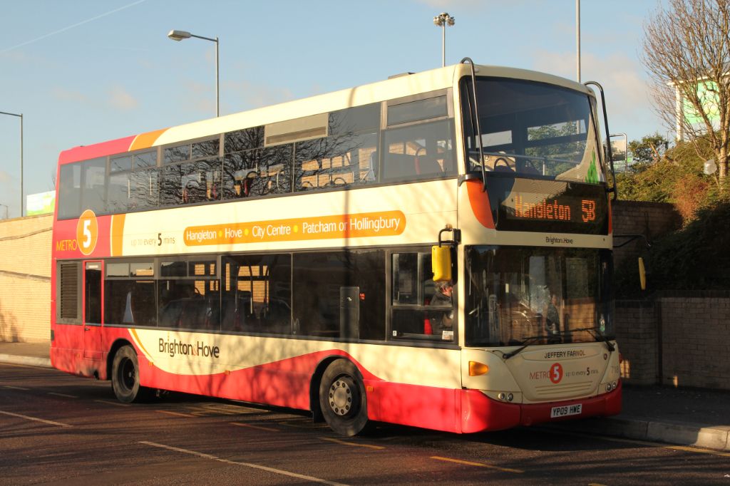 Go-Ahead Brighton and Hove 2009 Scania OmniCity N230 UD/Scania No.718 (YP09HWE) 'Jefferey Farnol' se...