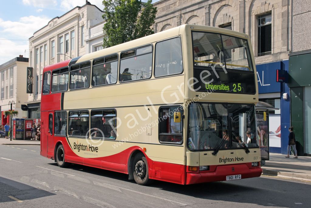 Go-Ahead Brighton and Hove 1999 Dennis Trident/East Lancs Lolyne No.801 (T801RFG) seen in North Stre...